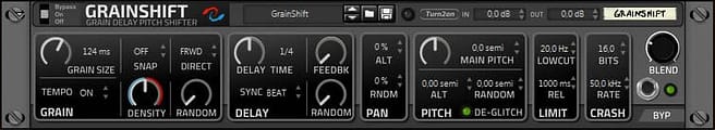 Introducing a powerful granular effect for real time processing of audio signal with pitch-shifter and delay. With GRAINSHIFT you can select position and length of grain that you get from incoming signal, way of playback direction of grain that been pitch-shifted and mixed with dry incomig signal.